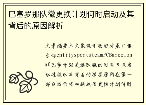 巴塞罗那队徽更换计划何时启动及其背后的原因解析